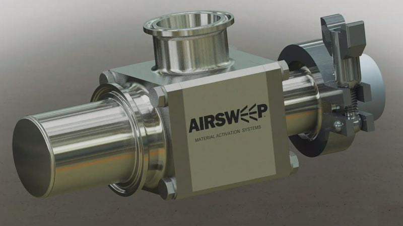 Airsweep eliminates bridging, ratholes and material build-up in storage vessels. Each patented nozzle emits a high-pressure, high-volume, 360-degree burst of compressed air to lift and sweep stalled material back into the flow stream – clearing the way for higher factory efficiency.