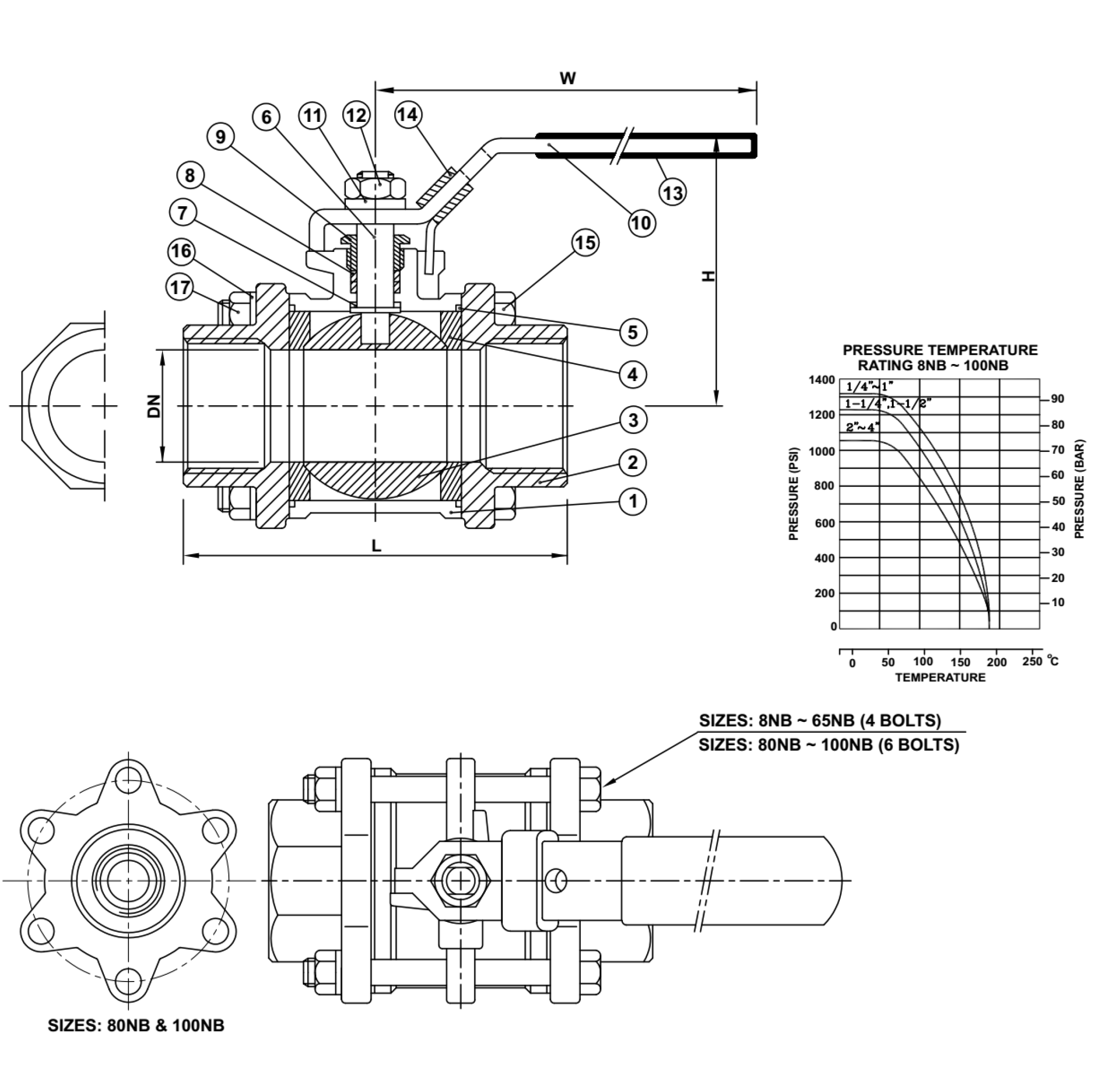 | SIZE | DN | H | W | L | S | Cv Factor | Weight kg |